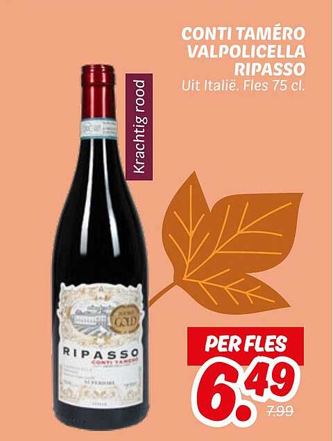 Bekijk nu de CONTİ TAMÉRO VALPOLICELLA RIPASSO aanbieding in de Dekamarkt folder. Deze aanbieding is geldig van 21-10-2025 tot en met 27-10-2025.