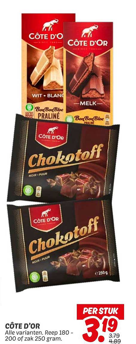 Ontdek de geweldige Côte D’or aanbieding in de nieuwste Dekamarkt folder. Naast deze aanbieding vind je nog veel meer aantrekkelijke kortingen. Je kunt de Côte D’or eenvoudig online bestellen via de Dekamarkt website of kopen in een winkel bij jou in de buurt.