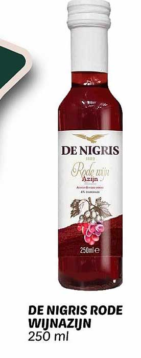 Bekijk de De Nigris Rode Wijnazijn aanbieding bij Dekamarkt! Deze fantastische aanbieding is nu beschikbaar in de nieuwste Dekamarkt folder. Profiteer van deze kans en bespaar flink op je aankoop.