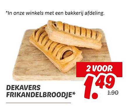 Ontdek de geweldige Dekavers Frikandelbroodje* aanbieding in de nieuwste Dekamarkt folder. Naast deze aanbieding vind je nog veel meer aantrekkelijke kortingen. Je kunt de Dekavers Frikandelbroodje* eenvoudig online bestellen via de Dekamarkt website of kopen in een winkel bij jou in de buurt.