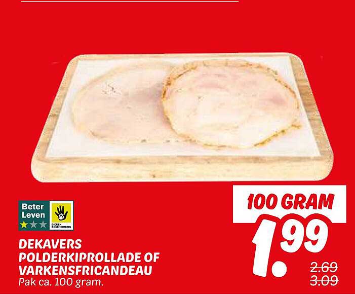 Ontdek nu de onweerstaanbare aanbieding van Dekavers Polderkiprollade of Varkensfricandeau, verkrijgbaar voor maar €1,99 per 100 gram. Deze aanbieding is geldig van 30 september tot en met 6 oktober 2025. Een ideale keuze voor heerlijke broodjes, salades of als smaakvol onderdeel van je hoofdmaaltijd. Met een aantrekkelijke prijsstelling is dit het moment om je voorraad op te stockeren!