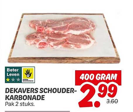 Ben je op zoek naar een heerlijke en betaalbare vleessoort voor je volgende maaltijd? Dan is deze aanbieding van de Dekamarkt echt iets voor jou! De Dekavers schouderkarbonade is een veelzijdig en sappig stuk vlees, perfect voor zowel door de pan als op de grill. Deze aanbieding is geldig van 1 tot 7 april 2025, dus mis het niet!
