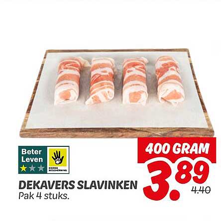 Bekijk de Dekavers Slavinken aanbieding bij Dekamarkt! Deze fantastische aanbieding is nu beschikbaar in de nieuwste Dekamarkt folder. Profiteer van deze kans en bespaar flink op je aankoop.