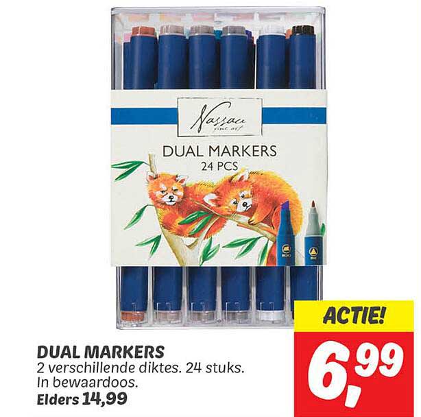 Bekijk de Dual Markers aanbieding bij Dekamarkt! Deze fantastische aanbieding is nu beschikbaar in de nieuwste Dekamarkt folder. Profiteer van deze kans en bespaar flink op je aankoop.