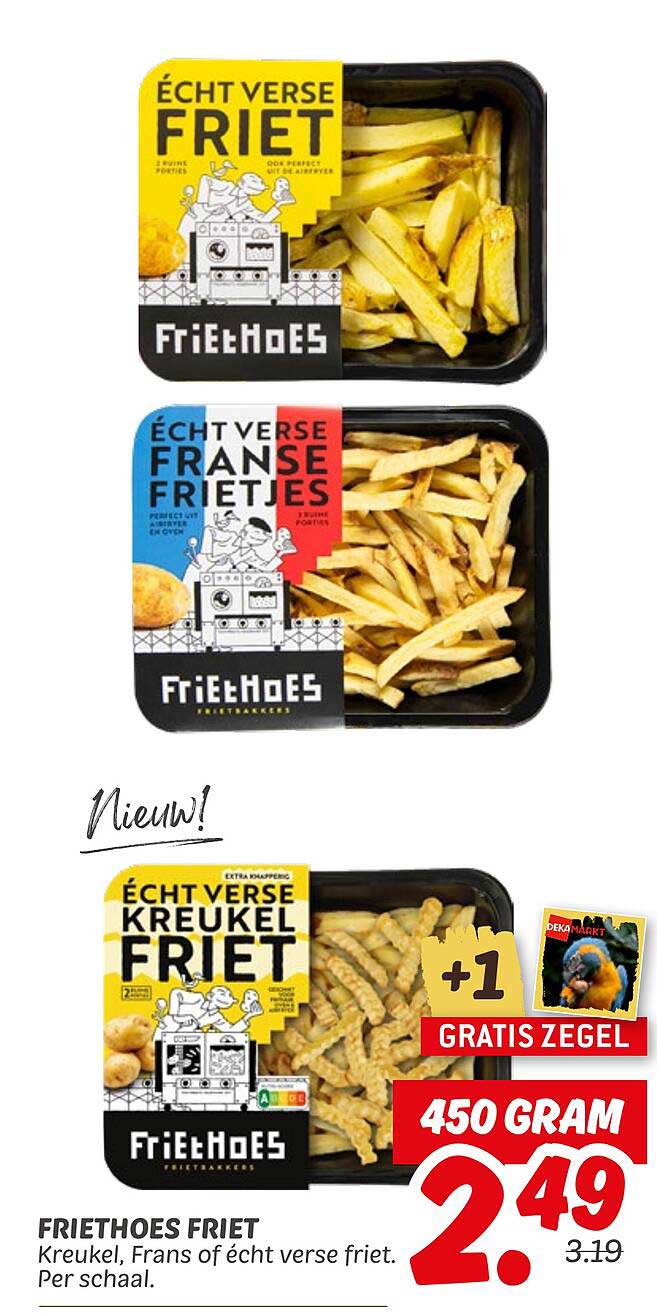 Bekijk nu de ÉCHT VERSE FRIET ÉCHT VERSE FRANSE FRITJES ÉCHT VERSE KREUKEL FRIT FRITHOES FRIEST aanbieding in de Dekamarkt folder. Deze aanbieding is geldig van 11-03-2025 tot en met 17-03-2025.