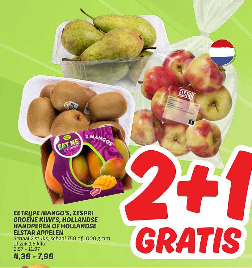 Eetrijpe Mango's, Zespri Groene Kiwi's, Hollandse Handperen Of Hollandse Elstar Appellen aanbieding bij Dekamarkt