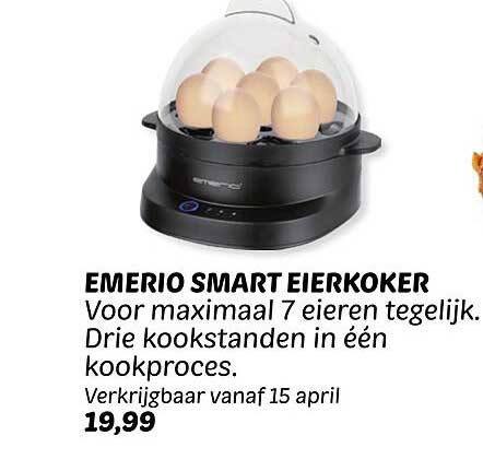 Bekijk nu de EMERIO SMART EIJKOKER aanbieding in de Dekamarkt folder. Deze aanbieding is geldig van 11-04-2025 tot en met 21-04-2025.