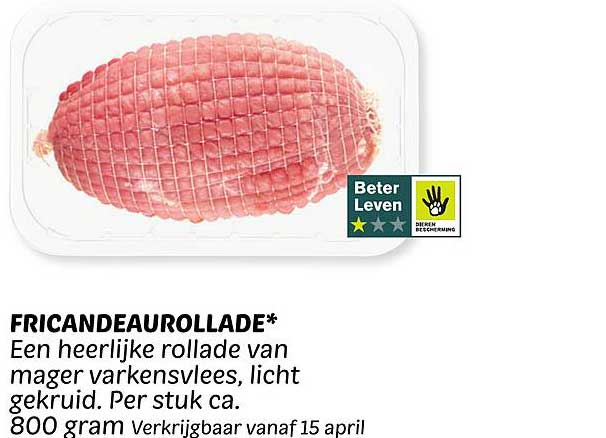 Ben je op zoek naar een smakelijke en veelzijdige aanvulling voor je maaltijden? Kijk dan niet verder! Deze fricandeaurollade van magere varkensvlees is licht gekruid en perfect voor elke gelegenheid. Of je nu een gezellige barbecue hebt, een feestmaal voorbereidt of gewoon een snelle maar heerlijke maaltijd wilt bereiden, deze rollade is een uitstekende keuze. Beschikbaar vanaf 15 april, dit is een aanbieding die je niet wilt missen!