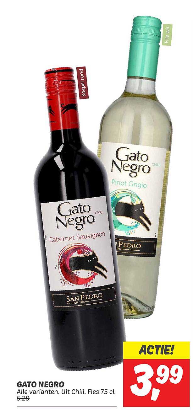 Bekijk de Gato Negro aanbieding bij Dekamarkt! Deze fantastische aanbieding is nu beschikbaar in de nieuwste Dekamarkt folder. Profiteer van deze kans en bespaar flink op je aankoop.