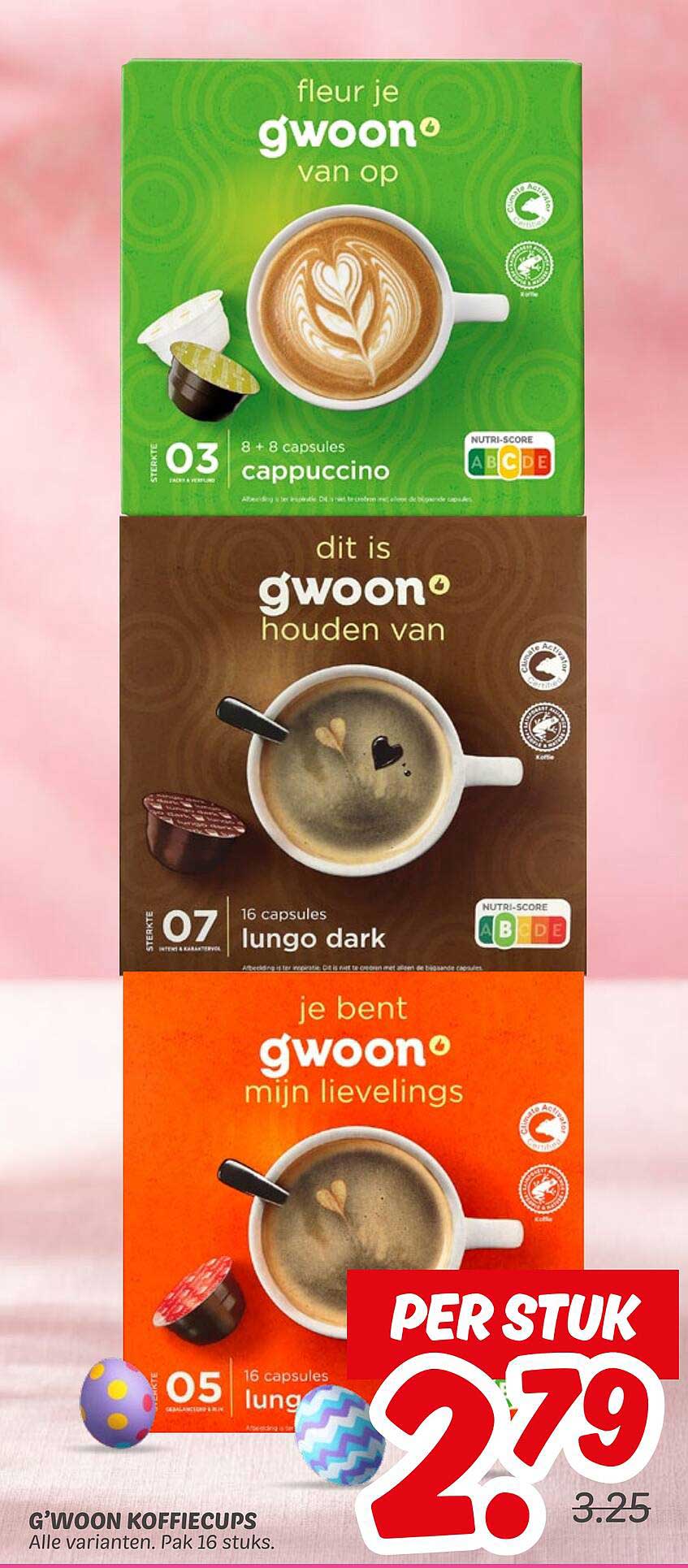 Bekijk nu de G’woon Koffiecups - Alle varianten. Pak 16 stuks. aanbieding in de Dekamarkt folder. Deze aanbieding is geldig van 08-04-2025 tot en met 14-04-2025.