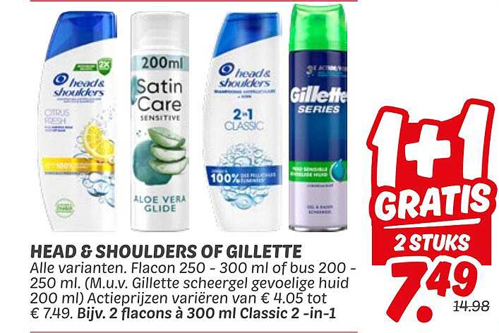 Bekijk nu de HEAD & SHOULDERS OF GILLETTE aanbieding in de Dekamarkt folder. Deze aanbieding is geldig van 15-04-2025 tot en met 21-04-2025.