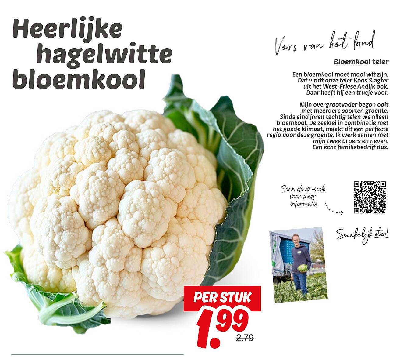 Bekijk de Heerlijke Hagelwitte Bloemkool aanbieding bij Dekamarkt! Deze fantastische aanbieding is nu beschikbaar in de nieuwste Dekamarkt folder. Profiteer van deze kans en bespaar flink op je aankoop.