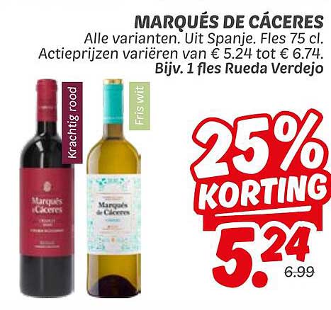 Bekijk nu de MARQUÉS DE CÁCERES aanbieding in de Dekamarkt folder. Deze aanbieding is geldig van 28-10-2025 tot en met 03-11-2025.