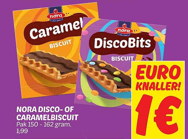 Bekijk de Nora Disco- Of Caramelbiscuit aanbieding bij Dekamarkt! Deze fantastische aanbieding is nu beschikbaar in de nieuwste Dekamarkt folder. Profiteer van deze kans en bespaar flink op je aankoop.