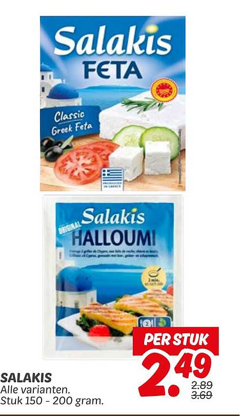 Ben je op zoek naar een heerlijke toevoeging aan je maaltijden? Dan is deze aanbieding uit de Dekamarkt-folder echt iets voor jou! Salakis biedt zowel Feta als Halloumi aan in verschillende varianten. Perfect voor salades, grillen of gewoon als snack. Deze aanbieding is geldig van 2025-09-02 tot en met 2025-09-08, dus wacht niet te lang!