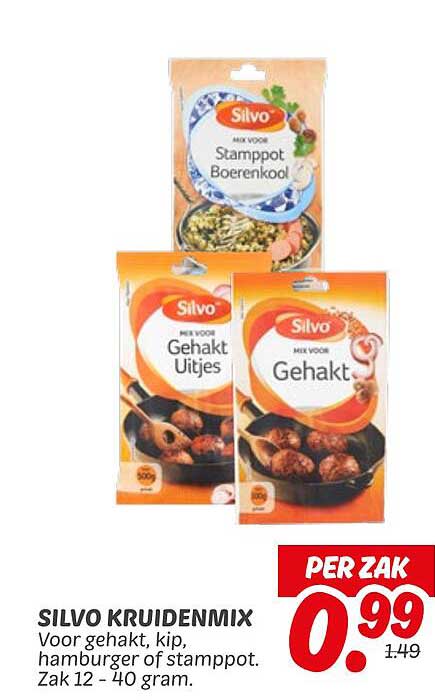 Bekijk de Silvo Kruidenmix aanbieding bij Dekamarkt! Deze fantastische aanbieding is nu beschikbaar in de nieuwste Dekamarkt folder. Profiteer van deze kans en bespaar flink op je aankoop.