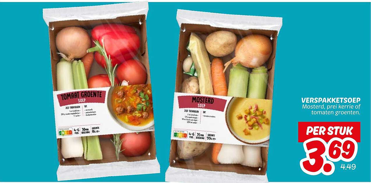 Bekijk nu de TOMAT GROENTE SOEP MOSTERD SOEP aanbieding in de Dekamarkt folder. Deze aanbieding is geldig van 11-03-2025 tot en met 17-03-2025.