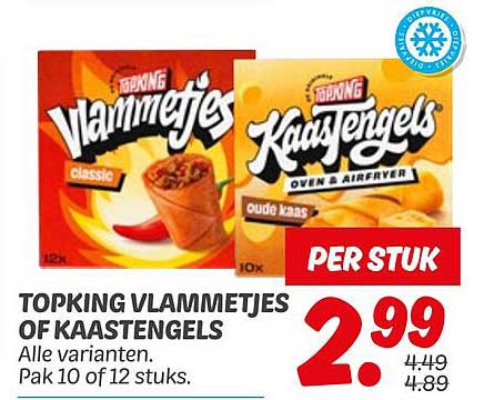 Bekijk nu de TOPKING VLAMMETJES OF KAASTENGELS aanbieding in de Dekamarkt folder. Deze aanbieding is geldig van 18-03-2025 tot en met 24-03-2025.