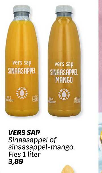 Bekijk nu de VERS SAP Sinaasappel of sinaasappel-mango. Fles 1 liter aanbieding in de Dekamarkt folder. Deze aanbieding is geldig van 11-04-2025 tot en met 21-04-2025.