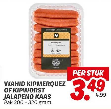 Bekijk nu de Wahid Kipmerquez of Kipworst Jalapeno Kaas aanbieding in de Dekamarkt folder. Deze aanbieding is geldig van 10-06-2025 tot en met 16-06-2025.