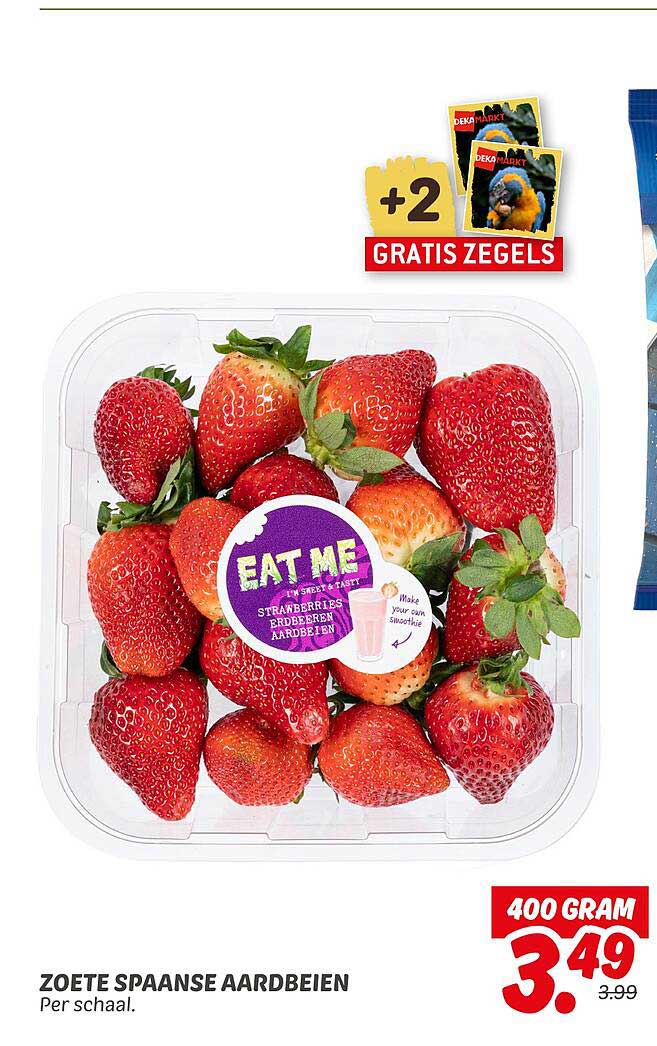 Ontdek de geweldige Zoete Spaanse Aardbeien aanbieding in de nieuwste Dekamarkt folder. Naast deze aanbieding vind je nog veel meer aantrekkelijke kortingen. Je kunt de Zoete Spaanse Aardbeien eenvoudig online bestellen via de Dekamarkt website of kopen in een winkel bij jou in de buurt.