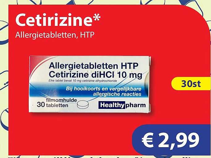 Bekijk nu de Cetirizine* Allergietabletten, HTP aanbieding in de Die Grenze folder. Deze aanbieding is geldig van 28-04-2025 tot en met 11-05-2025.