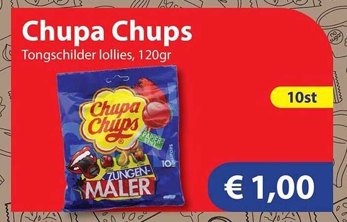 Ben je dol op lekkere snoepjes? Dan is dit je kans! De Chupa Chups tongschilders lollies zijn nu te koop voor slechts € 1,00. Deze heerlijke lollies, per pak van 120 gram, zijn perfect voor een zoete traktatie of als tussendoortje.