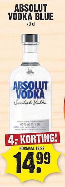 Ontdek de geweldige Absolut Vodka Blue aanbieding in de nieuwste Dirk folder. Naast deze aanbieding vind je nog veel meer aantrekkelijke kortingen. Je kunt de Absolut Vodka Blue eenvoudig online bestellen via de Dirk website of kopen in een winkel bij jou in de buurt.