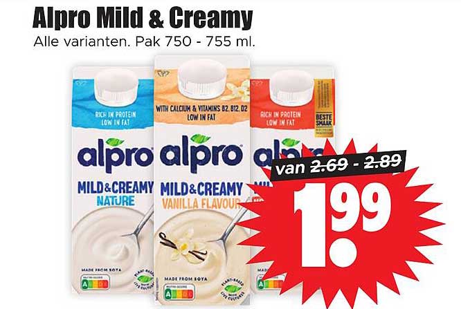 Ontdek de geweldige Alpro Mild & Creamy aanbieding in de nieuwste Dirk folder. Naast deze aanbieding vind je nog veel meer aantrekkelijke kortingen. Je kunt de Alpro Mild & Creamy eenvoudig online bestellen via de Dirk website of kopen in een winkel bij jou in de buurt.