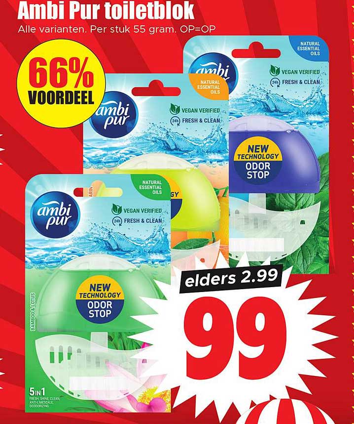 Bekijk nu de Ambi Pur toiletblok aanbieding in de Dirk folder. Deze aanbieding is geldig van 23-04-2025 tot en met 29-04-2025.