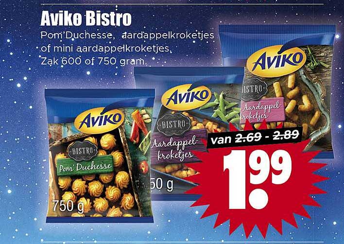 Ontdek de geweldige Aviko Bistro Pom'duchesse, Aardappelkroketjes Of Mini Aardappelkroketjes aanbieding in de nieuwste Dirk folder. Naast deze aanbieding vind je nog veel meer aantrekkelijke kortingen. Je kunt de Aviko Bistro Pom'duchesse, Aardappelkroketjes Of Mini Aardappelkroketjes eenvoudig online bestellen via de Dirk website of kopen in een winkel bij jou in de buurt.