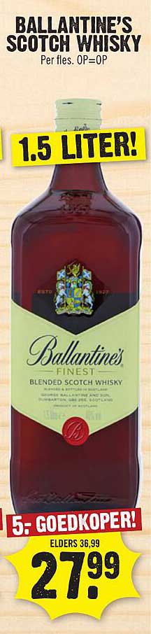 Bekijk de Ballantine's Scotch Whisky aanbieding bij Dirk! Deze fantastische aanbieding is nu beschikbaar in de nieuwste Dirk folder. Profiteer van deze kans en bespaar flink op je aankoop.
