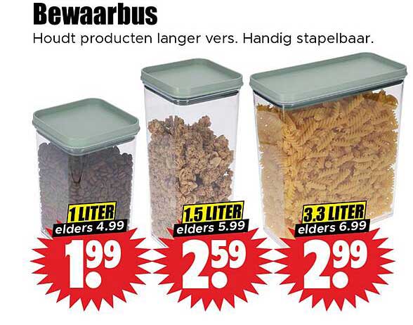 Ben jij ook altijd op zoek naar manieren om je voedingsmiddelen langer vers te houden? Dan hebben we goed nieuws voor je! Deze handige bewaarbus is nu verkrijgbaar in verschillende maten, en dat tegen een scherpe prijs! Met een aanbieding die loopt van 10 augustus tot en met 16 augustus 2025, is dit de perfecte gelegenheid om jouw keukenorganisatie een flinke boost te geven.