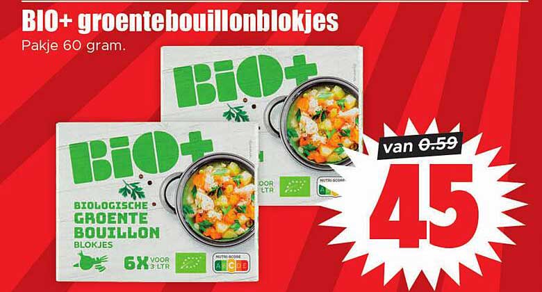 Bekijk de Bio+ Groentebouillonblokjes aanbieding bij Dirk! Deze fantastische aanbieding is nu beschikbaar in de nieuwste Dirk folder. Profiteer van deze kans en bespaar flink op je aankoop.