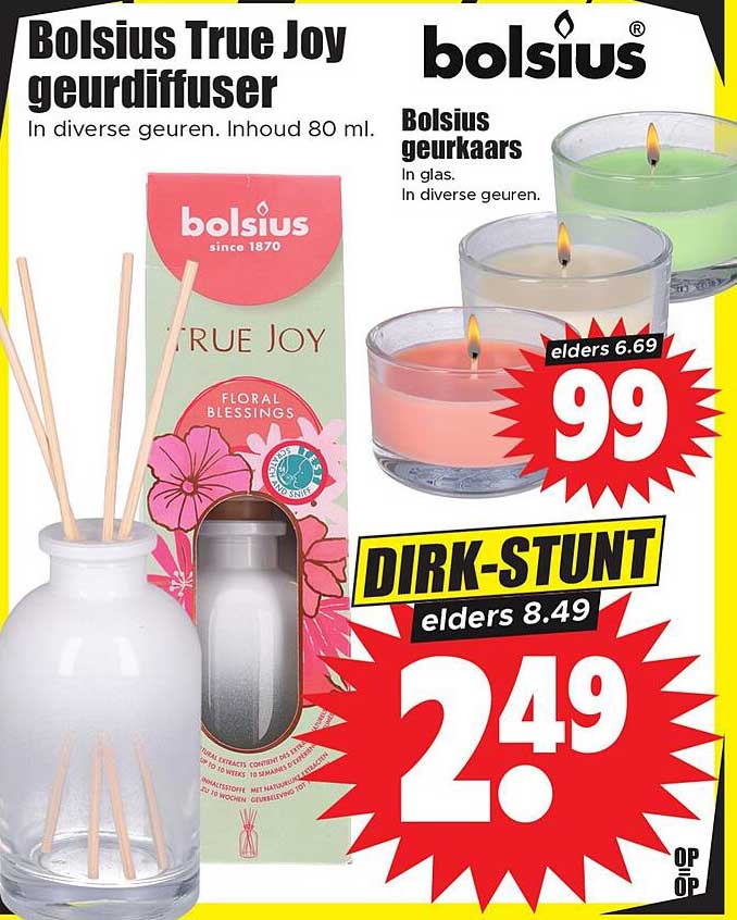 Bekijk nu de Bolsius True Joy geurdiffuser aanbieding in de Dirk folder. Deze aanbieding is geldig van 23-03-2025 tot en met 29-03-2025.