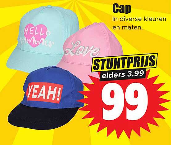 Ben je op zoek naar een trendy accessoire voor de zonnige dagen? Dan is deze cap uit de Dirk-folder precies wat je nodig hebt! Met zijn frisse kleuren en leuke teksten is het de ideale aanvulling op je outfit. Of je nu naar het strand gaat, een festival bezoekt of gewoon in de stad rondloopt, deze cap maakt je look compleet. Met een stuntprijs van slechts 99 cent, in plaats van de gebruikelijke 3.99, krijg je waar voor je geld!