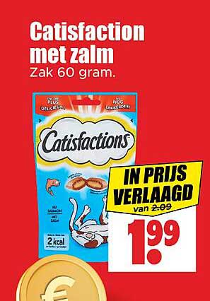 Bekijk nu de Catisfaction met zalm Zak 60 gram aanbieding in de Dirk folder. Deze aanbieding is geldig van 27-10-2025 tot en met 31-12-2025.