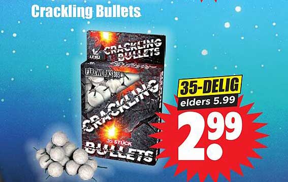 Bekijk de Crackling Bullets aanbieding bij Dirk! Deze fantastische aanbieding is nu beschikbaar in de nieuwste Dirk folder. Profiteer van deze kans en bespaar flink op je aankoop.