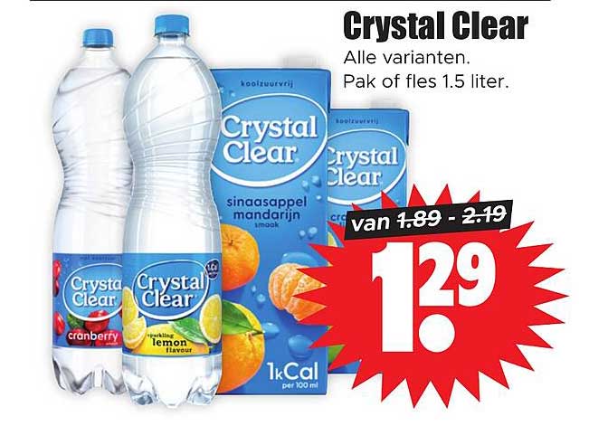Bekijk de Crystal Clear aanbieding bij Dirk! Deze fantastische aanbieding is nu beschikbaar in de nieuwste Dirk folder. Profiteer van deze kans en bespaar flink op je aankoop.