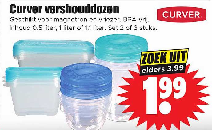 Bekijk de Curver Vershouddozen aanbieding bij Dirk! Deze fantastische aanbieding is nu beschikbaar in de nieuwste Dirk folder. Profiteer van deze kans en bespaar flink op je aankoop.