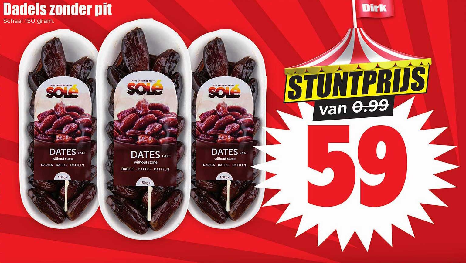 Ontdek de geweldige Dadel Zonder Pit aanbieding in de nieuwste Dirk folder. Naast deze aanbieding vind je nog veel meer aantrekkelijke kortingen. Je kunt de Dadel Zonder Pit eenvoudig online bestellen via de Dirk website of kopen in een winkel bij jou in de buurt.