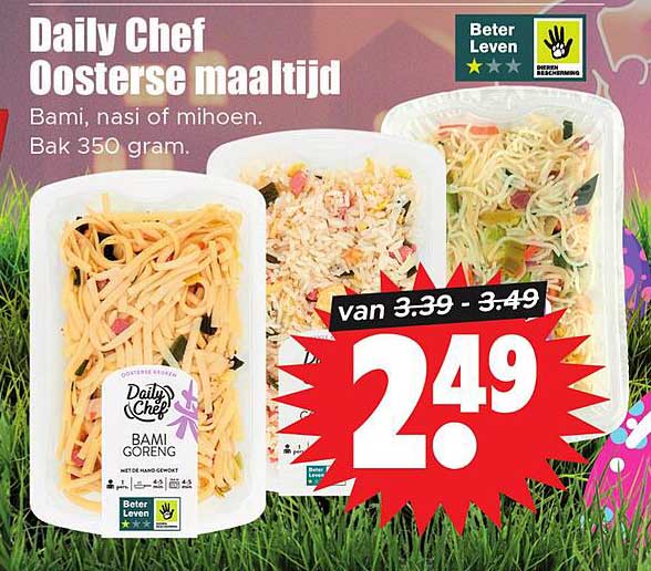 Bekijk nu de Daily Chef Oosterse maaltijd Bami Goreng aanbieding in de Dirk folder. Deze aanbieding is geldig van 16-04-2025 tot en met 22-04-2025.