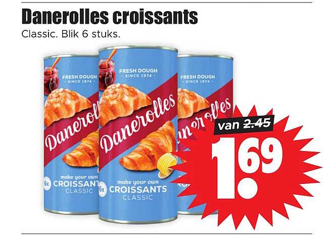 Ontdek de geweldige Danerolles Croissants aanbieding in de nieuwste Dirk folder. Naast deze aanbieding vind je nog veel meer aantrekkelijke kortingen. Je kunt de Danerolles Croissants eenvoudig online bestellen via de Dirk website of kopen in een winkel bij jou in de buurt.