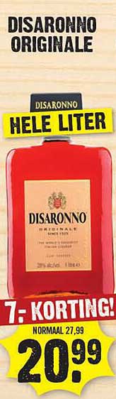 Ontdek de geweldige Disaronno Hele Liter aanbieding in de nieuwste Dirk folder. Naast deze aanbieding vind je nog veel meer aantrekkelijke kortingen. Je kunt de Disaronno Hele Liter eenvoudig online bestellen via de Dirk website of kopen in een winkel bij jou in de buurt.
