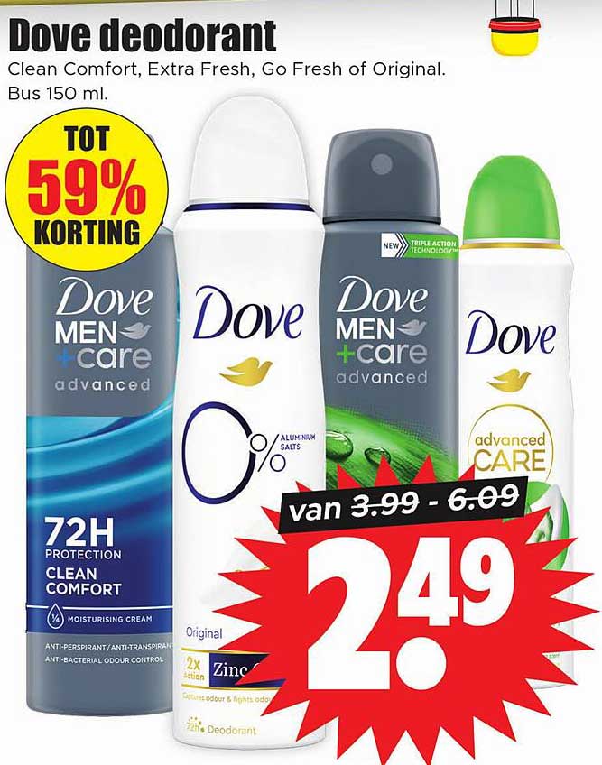 Ontdek de geweldige Dove Deodorant aanbieding in de nieuwste Dirk folder. Naast deze aanbieding vind je nog veel meer aantrekkelijke kortingen. Je kunt de Dove Deodorant eenvoudig online bestellen via de Dirk website of kopen in een winkel bij jou in de buurt.