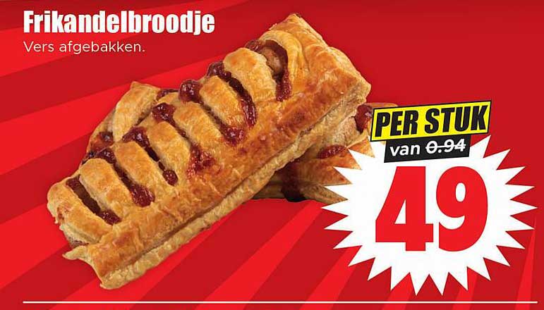 Ontdek de geweldige Frikandelbroodje aanbieding in de nieuwste Dirk folder. Naast deze aanbieding vind je nog veel meer aantrekkelijke kortingen. Je kunt de Frikandelbroodje eenvoudig online bestellen via de Dirk website of kopen in een winkel bij jou in de buurt.