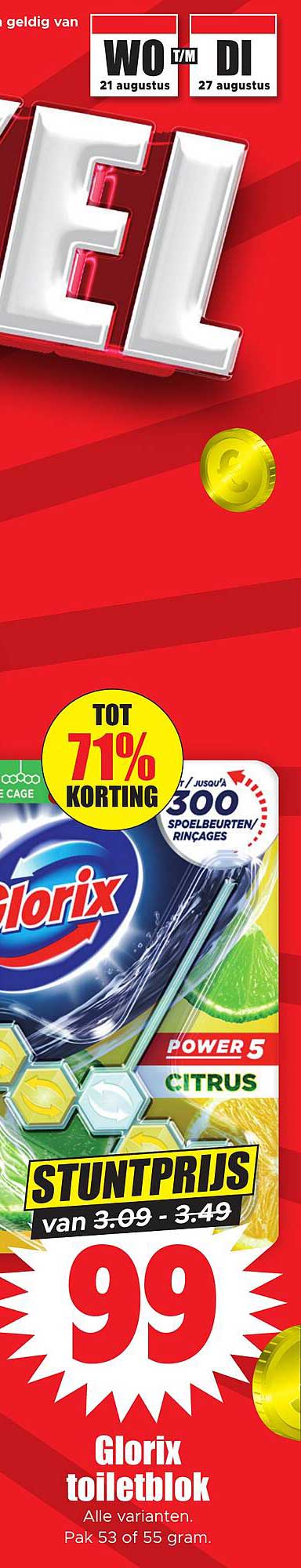Bekijk de Glorix Toiletblok aanbieding bij Dirk! Deze fantastische aanbieding is nu beschikbaar in de nieuwste Dirk folder. Profiteer van deze kans en bespaar flink op je aankoop.