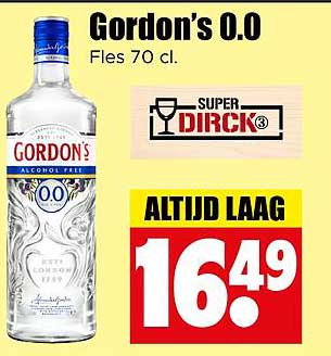 Ontdek de geweldige Gordon's 0.0 aanbieding in de nieuwste Dirk folder. Naast deze aanbieding vind je nog veel meer aantrekkelijke kortingen. Je kunt de Gordon's 0.0 eenvoudig online bestellen via de Dirk website of kopen in een winkel bij jou in de buurt.