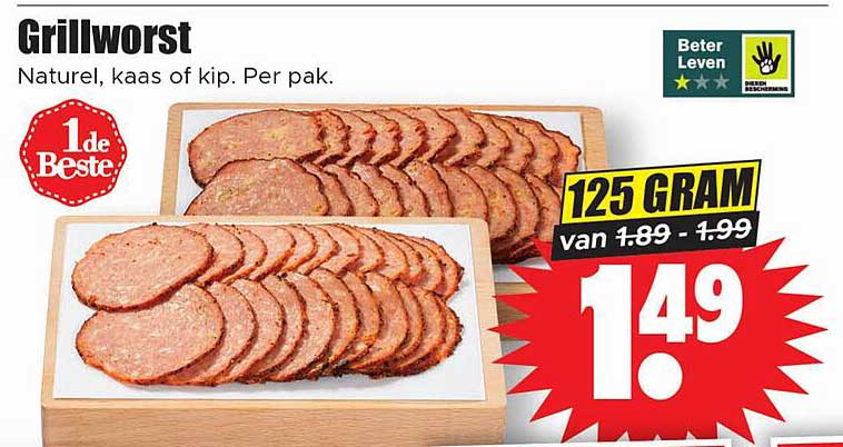 Wil je direct op de hoogte zijn zodra de Grillworst in de aanbieding is? Meld je aan voor onze aanbiedingen-alert. Zo krijg je een melding zodra het product tegen een voordelige prijs beschikbaar is.