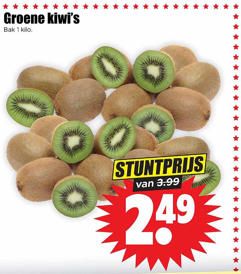 Bekijk de Groene Kiwi's aanbieding bij Dirk! Deze fantastische aanbieding is nu beschikbaar in de nieuwste Dirk folder. Profiteer van deze kans en bespaar flink op je aankoop.
